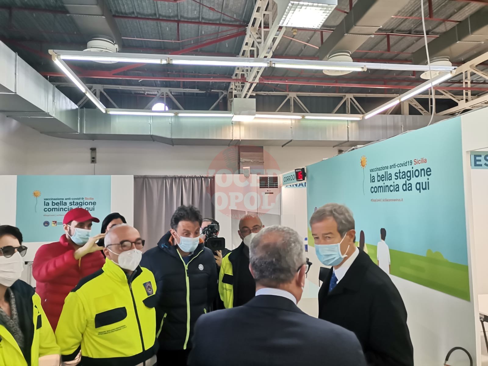 COVID – Messina, il presidente della Regione Musumeci in visita all’hub vaccinale della Fiera