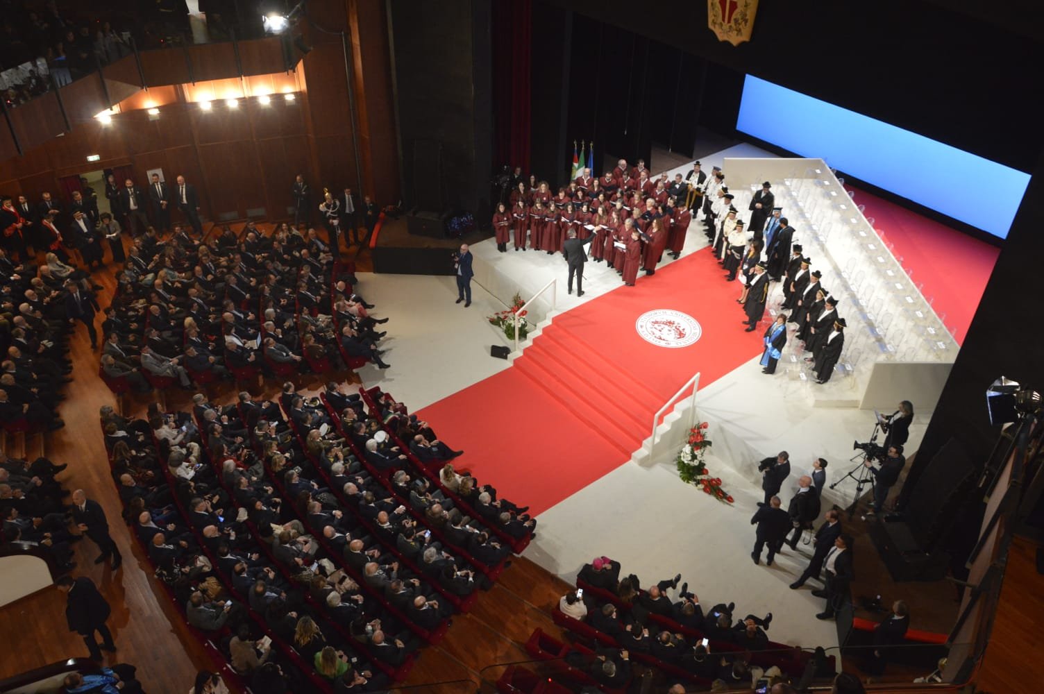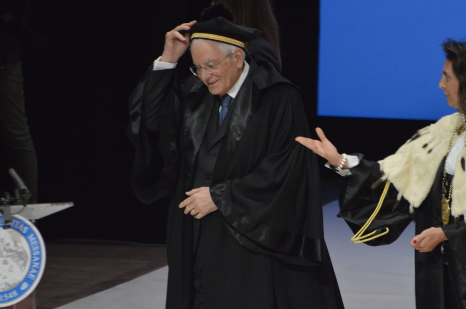 Una lectio doctoralis che è un monito da parte del Presidente della Repubblica, Sergio Mattarella, intervenuto oggi al Teatro Vittorio Emanuele di Messina per la cerimonia di apertura del nuovo anno accademico dell’Università di Messina, dopo aver ricevuto dalle mani della rettrice, Giovanna Spatari, la toga accademica: “Solo con un’Europa unita ci sarà un futuro di pace e benessere” perché “gli Stati europei singolarmente non sono in grado di fornire risposte adeguate alle sfide del presente”, il Capo dello Stato ha continuato rivolgendosi agli studenti, e ha spiegato che “l’Europa deve rimanere unita, nella consapevolezza della sua forza e della sua identità peculiare“, perché “soltanto uniti i paesi membri potranno continuare ad assicurare ai loro cittadini, come avviene da settant’anni, un futuro di pace e di diffuso benessere”.