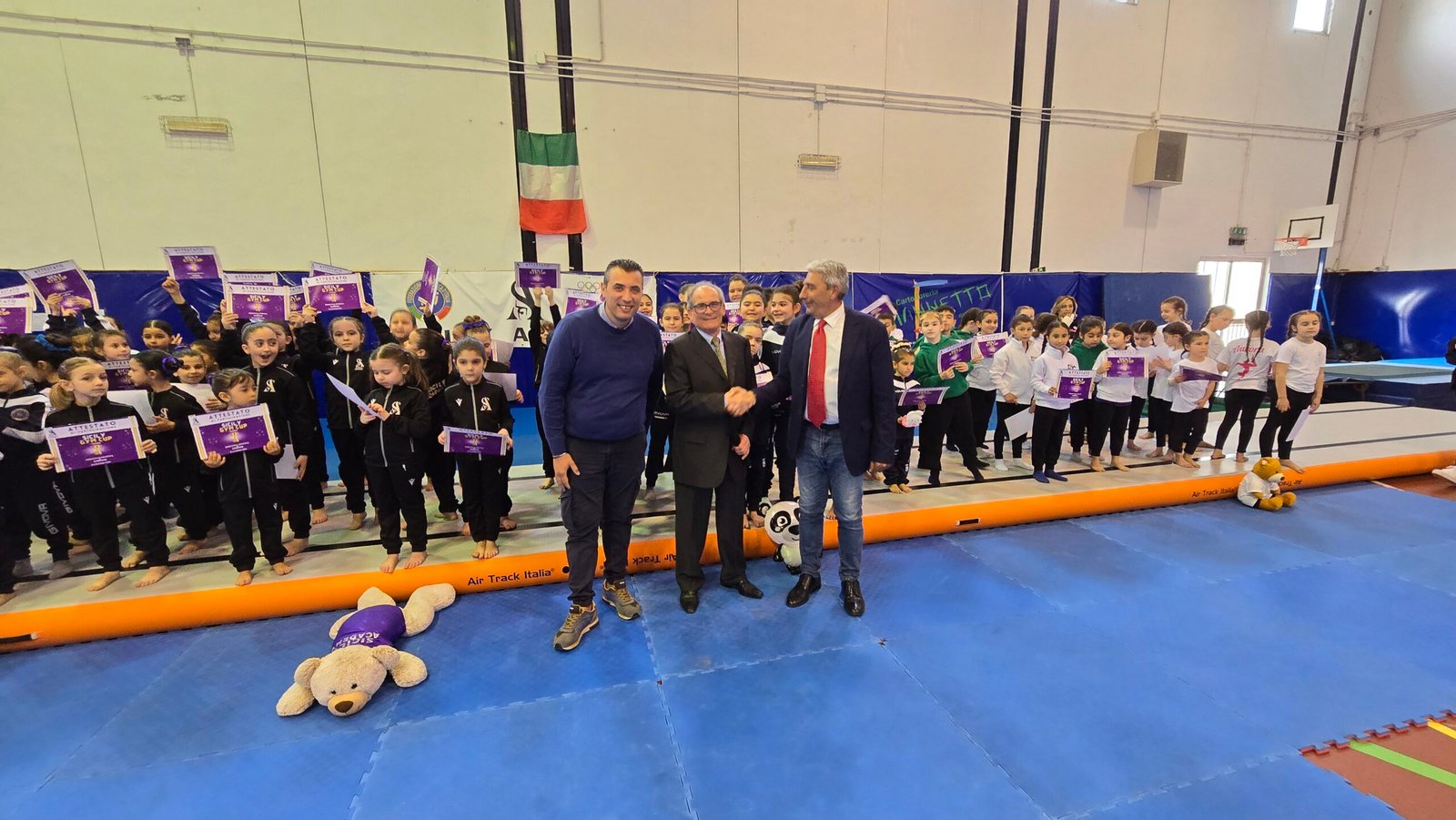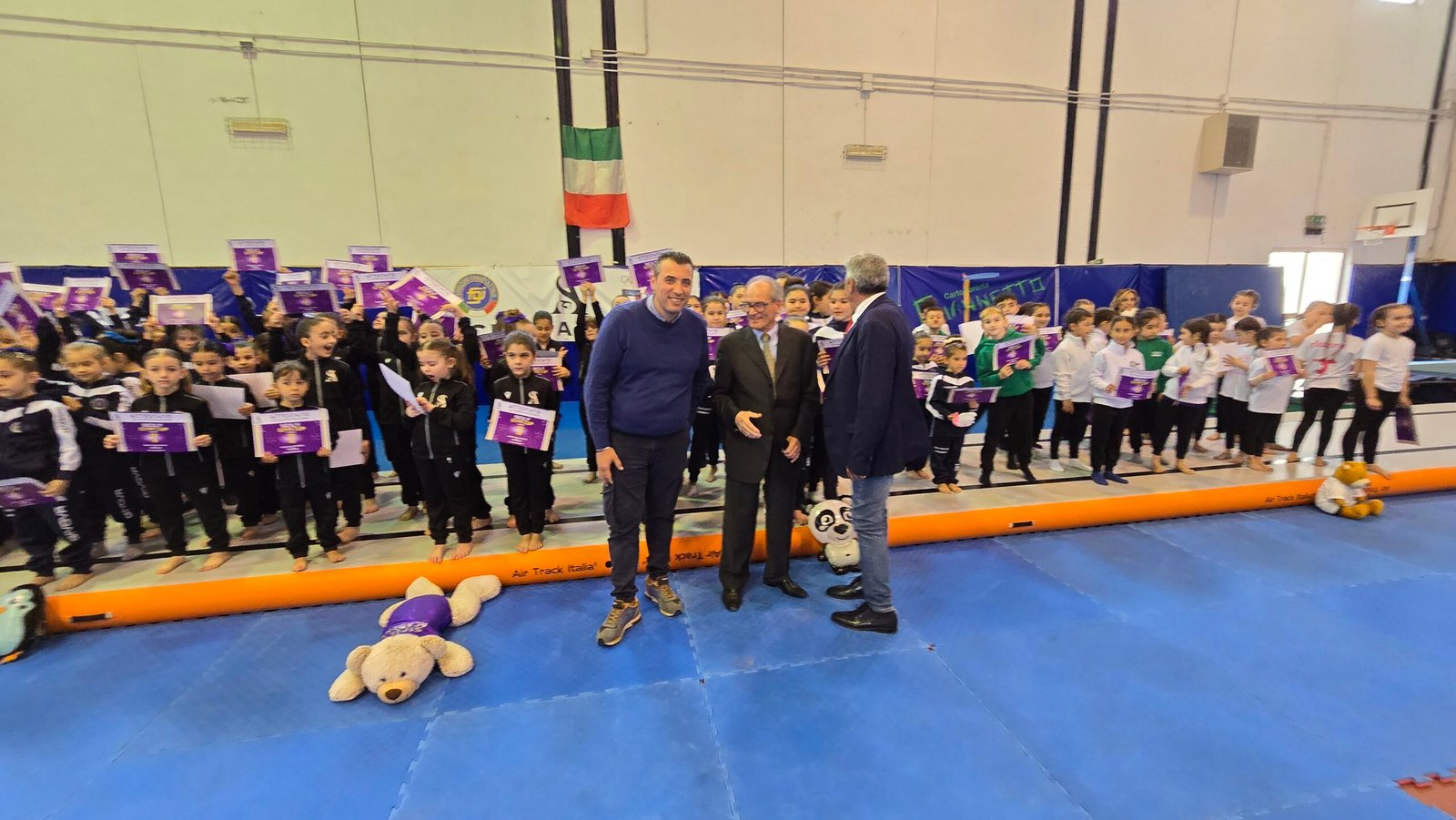 Pistone ha ringraziato le famiglie presenti che hanno riempito gli ampi spalti del Palazzetto e l’organizzazione dell’evento: “Abbiamo molto lavorato per momenti come questo – ha detto Pistone – quando ci siamo insediati, infatti, una delle nostre priorità è stata restituire decoro e, quindi, ospitalità alla nostra cittadina marinara. E il Palazzetto dello Sport, abbandonato da tempo e in condizioni di non presentabilità, è stato una delle prime attività di pulizia e di riqualificazione che abbiamo affrontato. Lo abbiamo ripulito dentro e fuori, ad esempio, da una vegetazione spontanea che lo rendeva impenetrabile. Quindi oggi vedervi tutti qui ci rende orgogliosi e felici“.