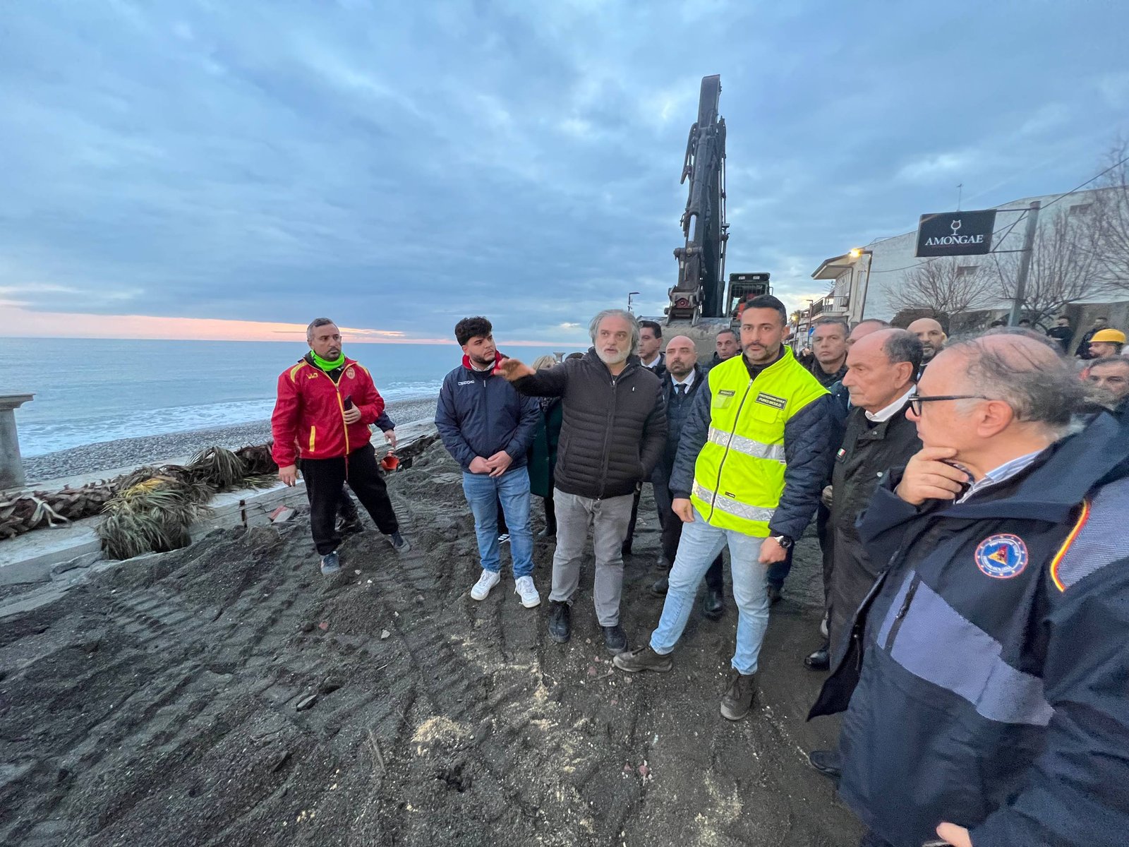 Prima tappa, Mazzeo, frazione di Taormina. Il presidente Schifani ha visitato la piazza sul mare, Salvatore D’Acquisto, crollata per la furia delle onde che, tra l’altro, ha provocato anche la distruzione della condotta fognaria di Taormina. Ad accompagnarlo il capo della Protezione civile regionale e commissario per l’emergenza Salvo Cocina, il prefetto di Messina Cosima Di Stani, il sindaco metropolitano di Messina Federico Basile, il vice sindaco di Taormina Alessandra Cullurà, il presidente società Patrimoni partecipata del Comune di Taormina Massimo Brocato. Presente anche l’ingegnere Antonino Puleio, presidente del consorzio Messina-Catania guidato da Webuild con l’impresa Pizzarotti che ha messo a disposizione mezzi e tecnici per eseguire i lavori urgenti di rimozione materiali e messa in sicurezza in tutti i Comuni della fascia costiera interessata dai danni.